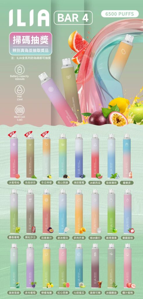 不再局限於少數選擇,ILIA哩亞四代抛棄式6500口提供了豐富多樣的口味選擇,